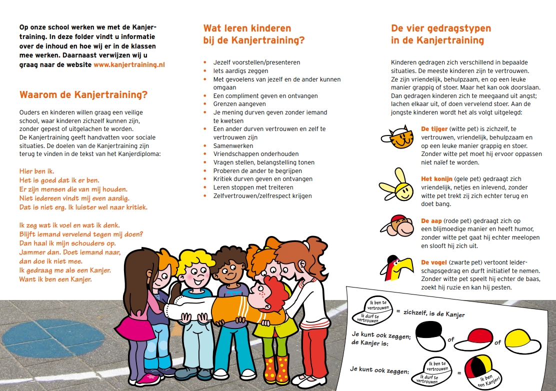 Kinderen moeten zich veilig voelen op school en daarom besteden wij veel aandacht aan hoe we met elkaar omgaan. Door middel van de Kanjertraining begeleiden wij onze leerlingen in hun sociaal-emotionele ontwikkeling. Hiervoor hebben wij twee speciaal opgeleide kanjercoördinatoren op school en worden al onze collega's regelmatig bijgeschoold om up to date te blijven als kanjerleerkracht/-ondersteuner.